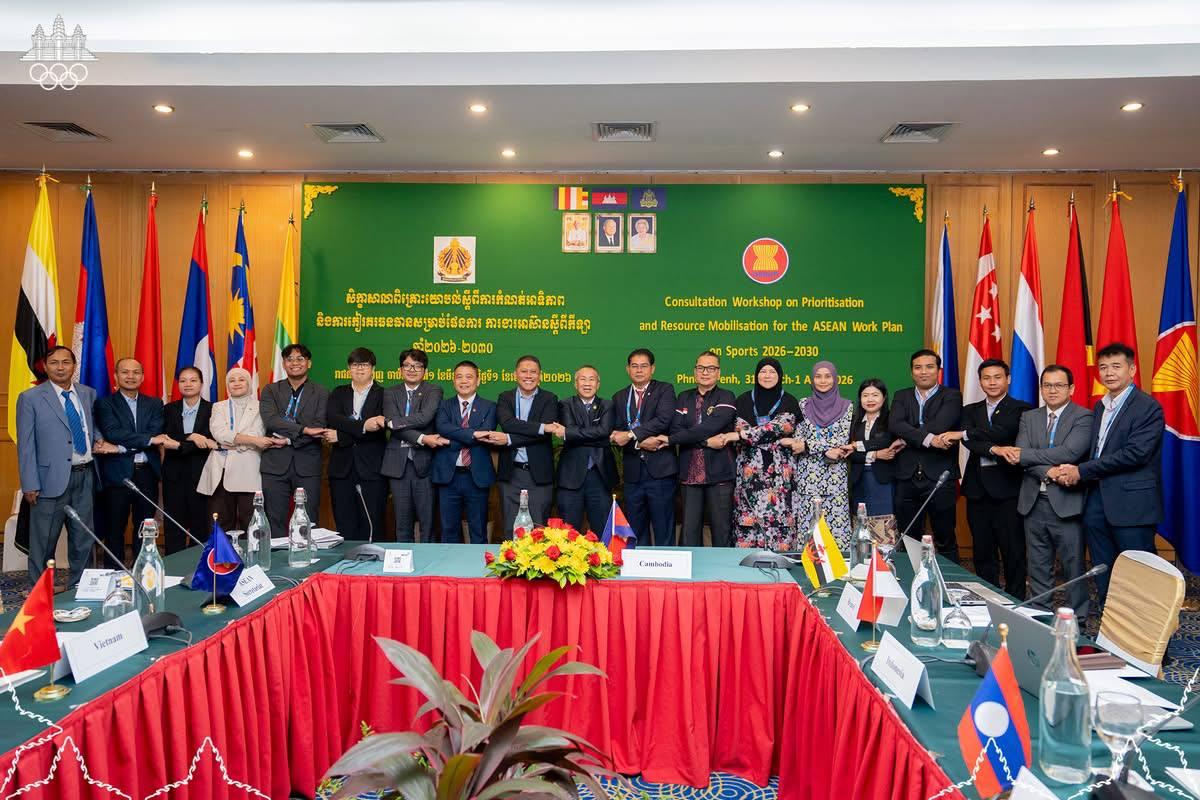 សិក្ខាសាលាពិគ្រោះយោបល់ស្ដីពីការកំណត់អាទិភាព និងកៀរគរធនធានសម្រាប់ផែនការការងារអាស៊ាន ស្ដីពីកីឡា ឆ្នាំ២០២៦-២០៣០ រៀបចំដោយក្រសួងអប់រំ យុវជន និងកីឡា បានចាប់ផ្ដើមដំណើរការហើយនៅព្រឹកថ្ងៃអង្គារ ទី៣១ ខែមីនា ឆ្នាំ២០២៦ នាសណ្ឋាគារកាំបូឌីយ៉ាណា រាជធានីភ្នំពេញ ដែលជាផ្នែកមួយនៃដំណើរឆ្ពោះទៅកិច្ចប្រជុំឧត្តមមន្ដ្រីកីឡាអាស៊ាន និងកិច្ចប្រជុំរដ្ឋមន្ដ្រីកីឡាអាស៊ាន នាចុងឆ្នាំ២០២៦ និងឆ្នាំ២០២៧ ដែលកម្ពុជានឹងធ្វើម្ចាស់ផ្ទះ។